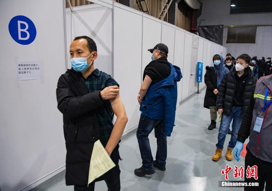 接種人員在設(shè)置于北京市朝陽區(qū)朝陽規(guī)劃藝術(shù)館的臨時接種點參加新冠病毒滅活疫苗接種。中新社記者 侯宇 攝