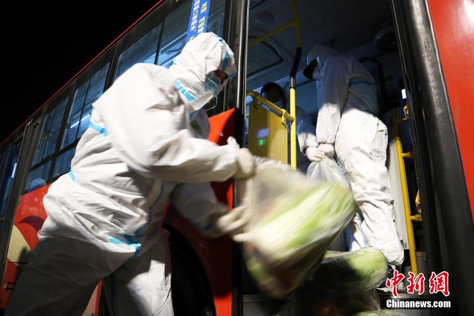 1月25日午夜,吉林省通化市,防疫人員在連夜為隔離居民運(yùn)送生活物資。截至1月25日24時(shí),本次疫情通化市現(xiàn)有確診病例202例,無癥狀感染者58例。中新社記者 蒼雁 攝
