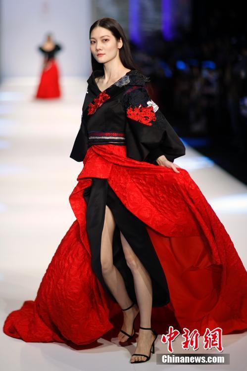 4月13日,“約會天才媽媽 —— 她愛非遺藝術(shù)展”暨“天才媽媽×東鄉(xiāng)繡娘”張凱惠&張肇達公益時裝秀系列活動在上海時裝周閉幕日上舉行。該活動由中國婦女發(fā)展基金會、上海時裝周組委會等機構(gòu)聯(lián)合舉辦。圖為模特在公益時裝秀上展示著名時裝設(shè)計師張肇達及其女兒張凱惠聯(lián)合設(shè)計的時裝。 中新社記者 盛佳鵬 攝