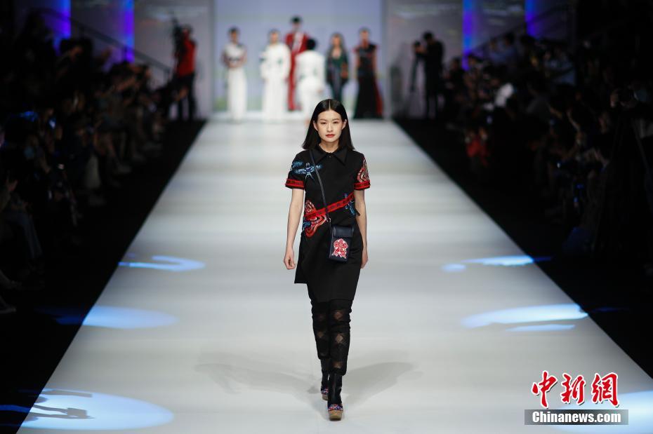 4月13日,“約會天才媽媽 —— 她愛非遺藝術(shù)展”暨“天才媽媽×東鄉(xiāng)繡娘”張凱惠&張肇達公益時裝秀系列活動在上海時裝周閉幕日上舉行。該活動由中國婦女發(fā)展基金會、上海時裝周組委會等機構(gòu)聯(lián)合舉辦。圖為繡娘在公益時裝秀上展示著名時裝設(shè)計師張肇達及其女兒張凱惠聯(lián)合設(shè)計的時裝。中新社記者 盛佳鵬 攝