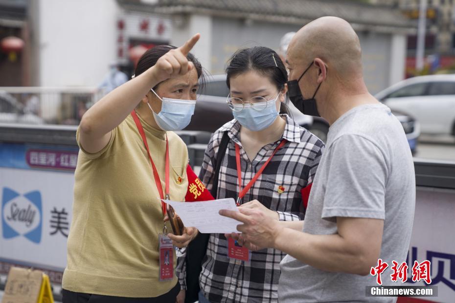 5月15日,安徽省合肥市包河區(qū)同安街道五里廟社區(qū),志愿者為市民進(jìn)行接種流程引導(dǎo)和接種須知的解釋工作。 中新社發(fā) 程曦 攝