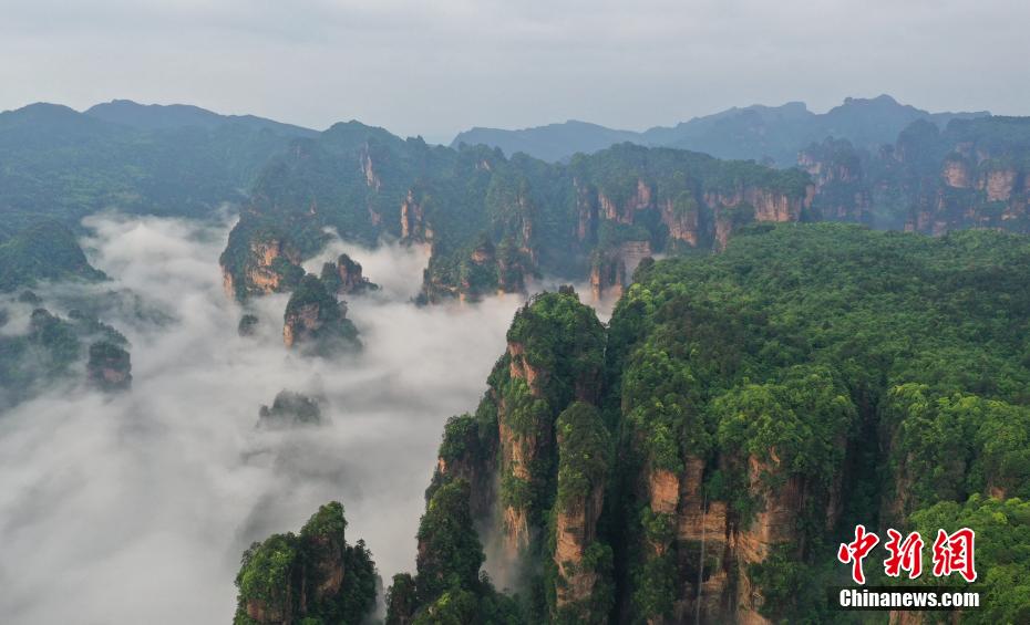 圖為云團(tuán)在峰林之間回旋舒展。 吳勇兵 攝