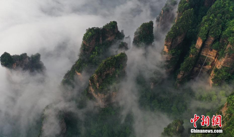 圖為張家界武陵源云海浩瀚,宛若仙境。 吳勇兵 攝