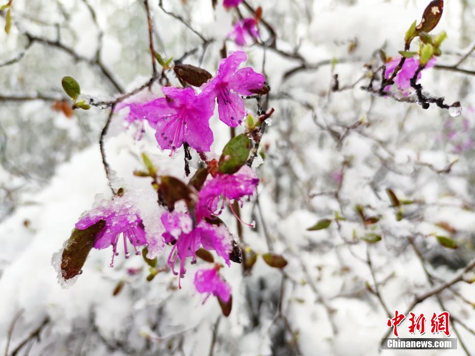 盛開在雪中的杜鵑花鮮艷欲滴。張超 攝