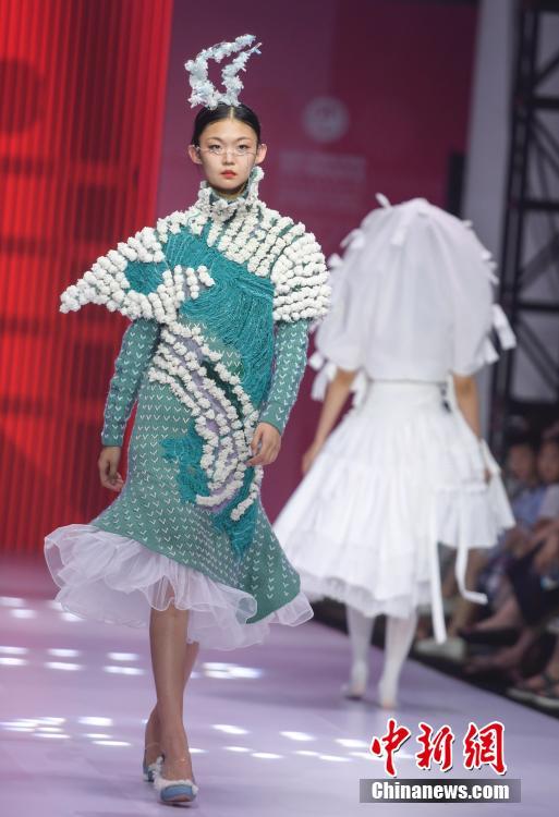 6月22日晚,山東工藝美術(shù)學院設計·生活2021時尚發(fā)布會在山東濟南上演。學生們設計、制作的90余套作品參展。圖為山東工藝美術(shù)學院表演專業(yè)的學生展示服裝。 中新社記者 張勇 攝
