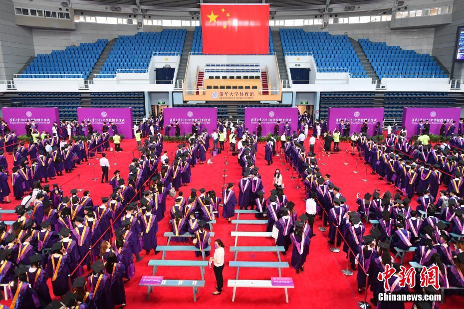 6月27日,清華大學2021年本科生畢業(yè)典禮在北京舉行,3389名本科生畢業(yè)。圖為清華大學學位授予儀式現場! 中新社記者 田雨昊 攝