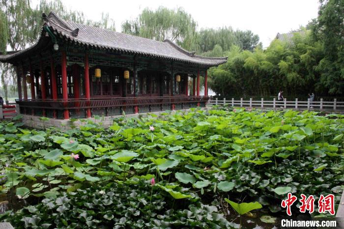 山東濟南大明湖畔南豐祠雨荷廳前的荷花池里驚現(xiàn)一株并蒂蓮!O婷婷 攝