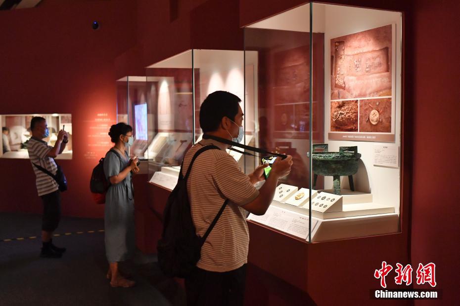8月11日,參觀者在位于北京的中國(guó)國(guó)家博物館拍攝展出的文物。近日,廣州秦漢考古成果展在國(guó)博舉辦,該展覽匯集廣州地區(qū)出土的秦漢考古文物330余件(套),包括南越王墓、南越王宮以及廣州其他秦漢考古遺址出土的各類珍貴文物。 中新社記者 田雨昊 攝