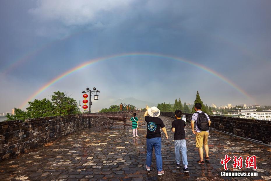 圖為南京上空雙彩虹橫跨明城墻。 泱波 攝