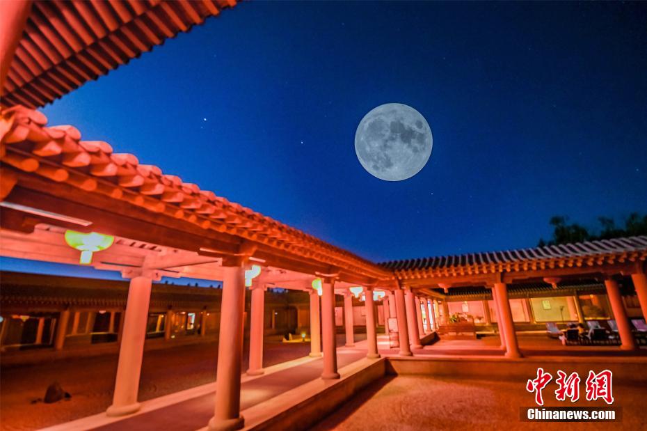 圖為明月照耀敦煌山莊。王斌銀 攝