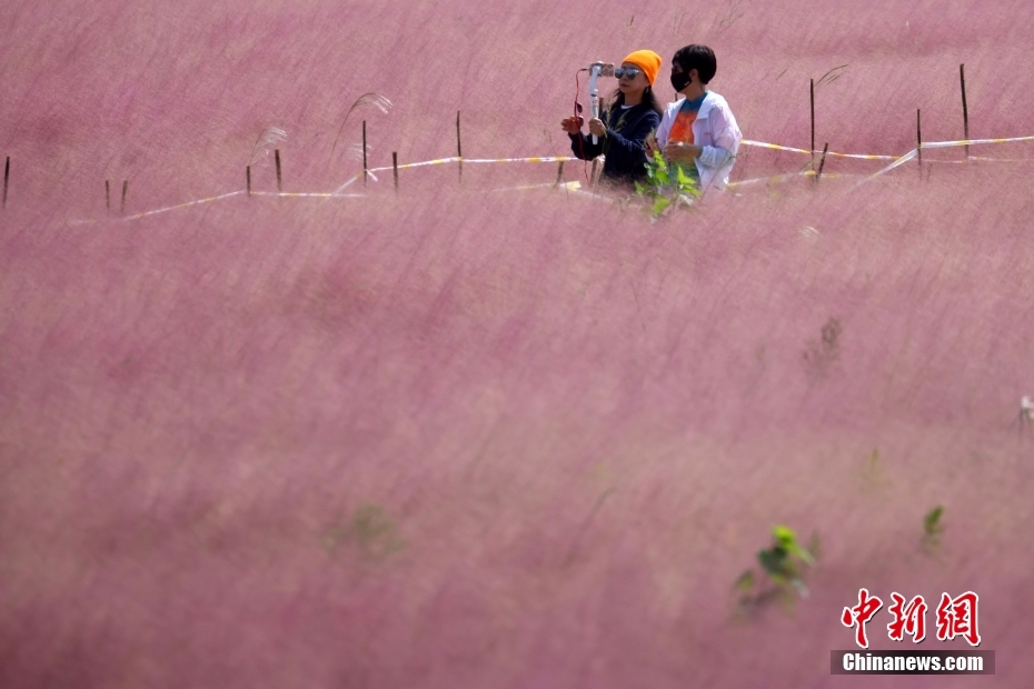 10月12日,江蘇省南京市雨花臺區(qū)三橋濕地公園內(nèi),盛開的粉黛亂子草曼妙輕盈,如煙似霧,吸引了不少市民和游客前來欣賞“粉色花!。中新社記者 泱波 攝