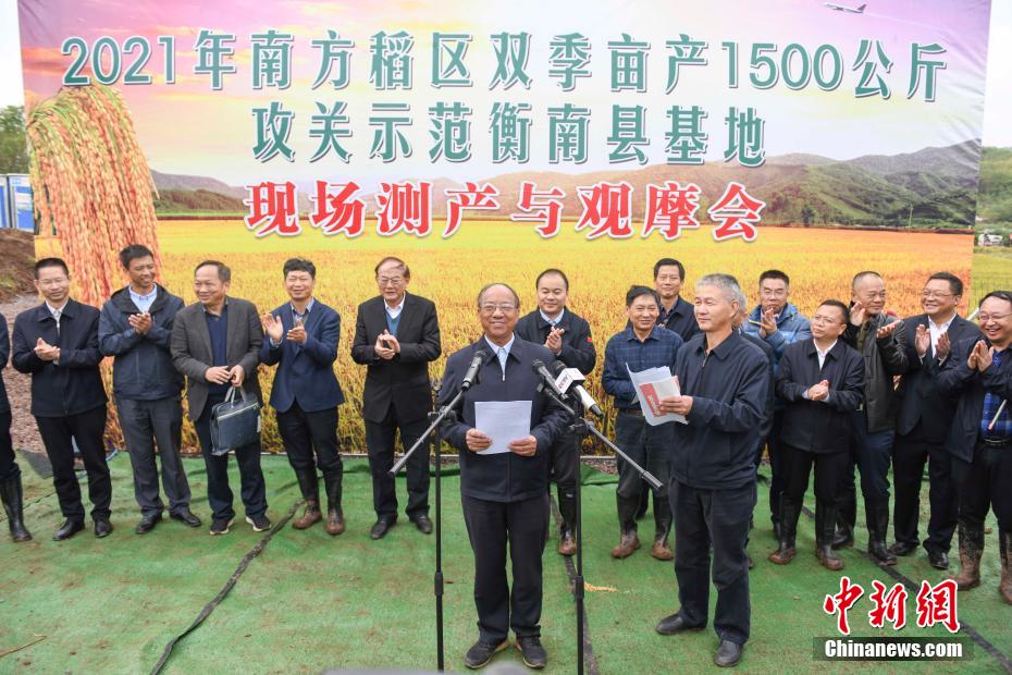 圖為中國科學(xué)院院士謝華安宣布測產(chǎn)結(jié)果。 楊華峰 攝