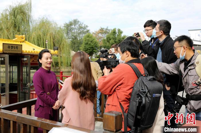 臺兒莊古城旅游集團副總經(jīng)理黃曉莉接受中外記者采訪!∩骋婟 攝