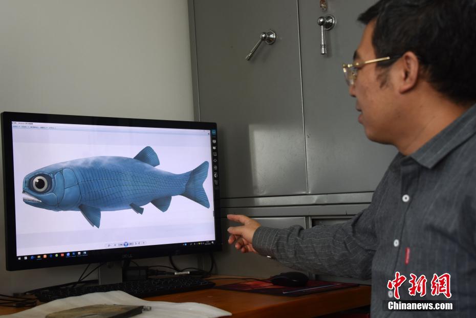 10月26日,中國(guó)科學(xué)院古脊椎動(dòng)物與古人類研究所消息,該所徐光輝研究團(tuán)隊(duì)對(duì)采自云南羅平三疊紀(jì)海相地層3件2.44億年前古魚化石的最新研究發(fā)現(xiàn),它們是目前所知世界上最古老的肋鱗裂齒魚類,將肋鱗裂齒魚類最早發(fā)現(xiàn)紀(jì)錄提前約200萬(wàn)年。這也是該魚類在亞洲的首次發(fā)現(xiàn),因此命名為亞洲肋鱗裂齒魚。圖為徐光輝研究員展示介紹亞洲肋鱗裂齒魚復(fù)原圖。 中新社記者 孫自法 攝