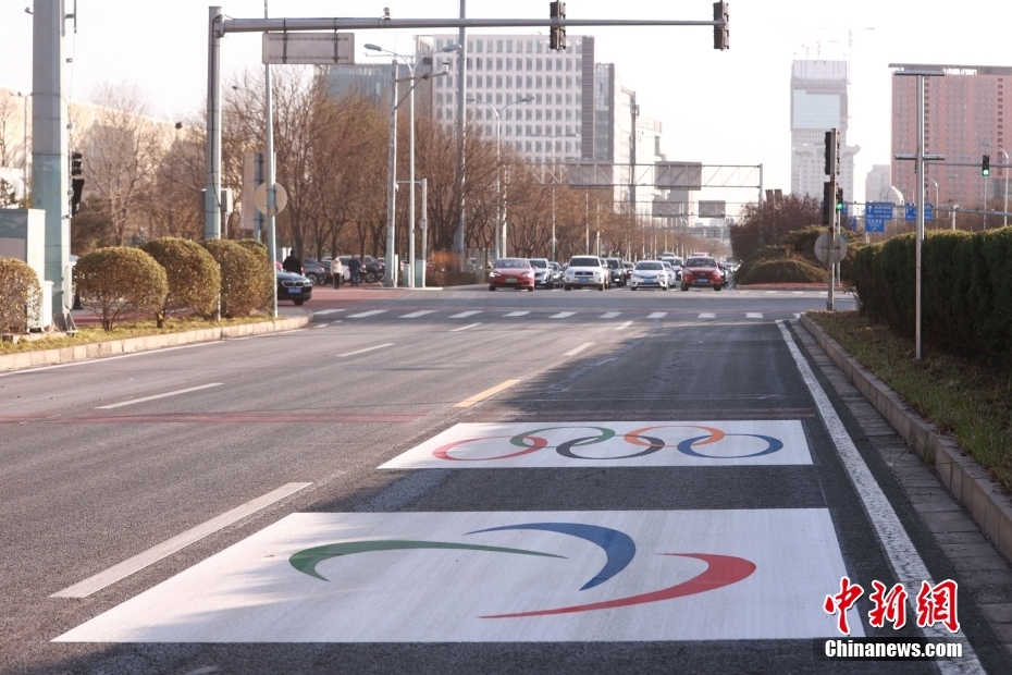 11月13日,在北京奧林西路冬奧會專用道標(biāo)識。中新社發(fā) 陳曉根 攝 圖片來源:CNSPHOTO