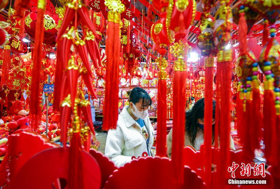 1月11日,新疆烏魯木齊市一大型批發(fā)市場,市民選購融入虎元素的新春飾品。隨著農(nóng)歷虎年春節(jié)的臨近,烏魯木齊各大商場內(nèi)的新春飾品熱銷。 中新社記者 劉新 攝