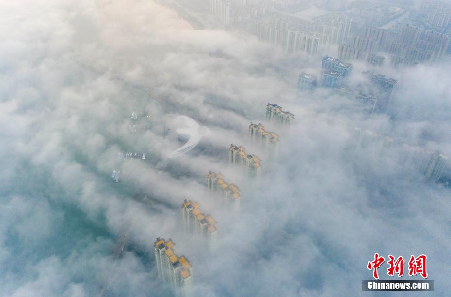 1月11日,地處修河流域的江西省九江市武寧縣出現(xiàn)平流霧景觀,給冬日的大地披上了一層靚麗的面紗,宛如仙境,美不勝收。 蔣德先 攝