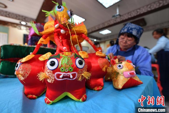 民間藝人現(xiàn)場(chǎng)制作的虎年生肖布藝!⊥鹾I 攝