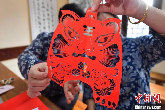 民間藝人展示虎年生肖剪紙作品!⊥鹾I 攝