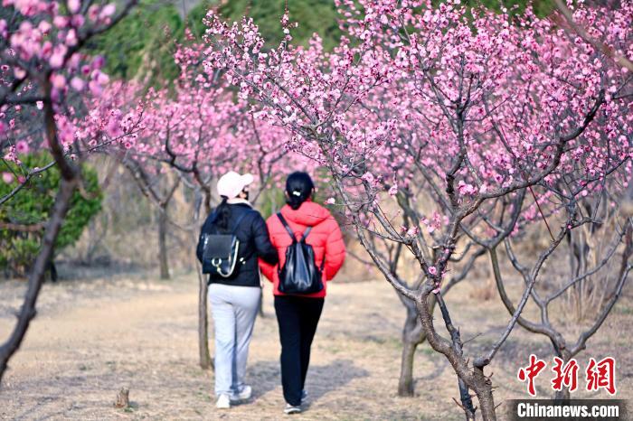 3月10日,山東省泰安市,泰山梅園中的梅花、山桃花進入觀賞期,吸引眾多游人踏春賞花。 劉春蓮 攝
