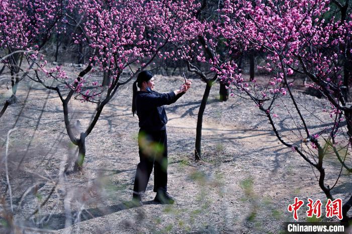 3月10日,山東省泰安市,泰山梅園中的梅花、山桃花進(jìn)入觀賞期,吸引眾多游人踏春賞花!⒋荷 攝