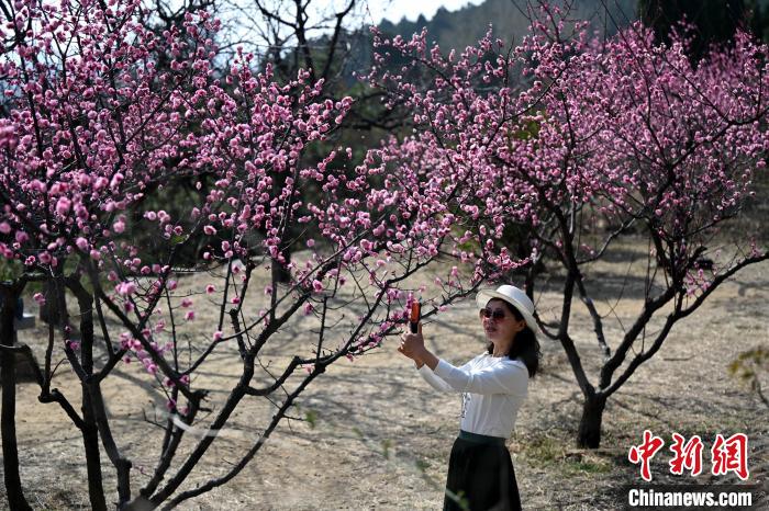 3月10日,山東省泰安市,泰山梅園中的梅花、山桃花進(jìn)入觀賞期,吸引眾多游人踏春賞花!⒋荷 攝