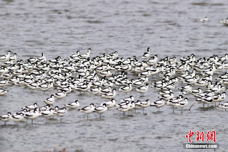 成群反嘴鷸在灘涂棲息。 王海濱 攝