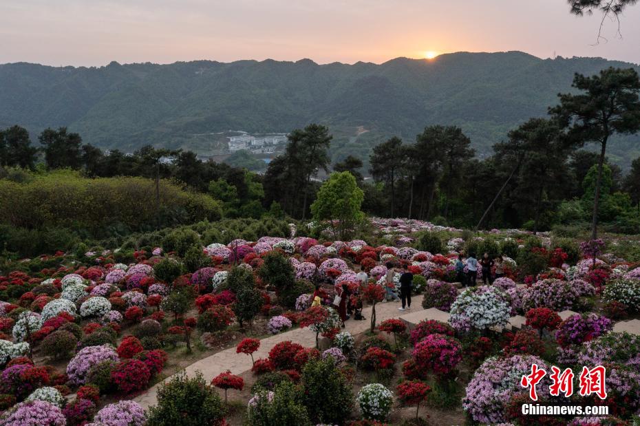 連片的杜鵑花在夕陽下分外美麗。 何蓬磊 攝