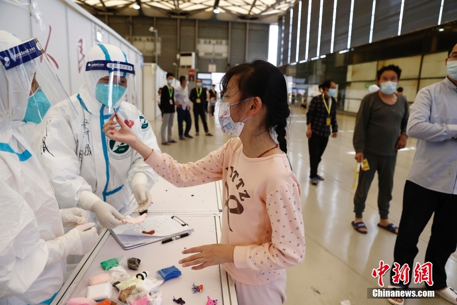 4月10日,記者探訪上海浦東新區(qū)新國際博覽中心方艙醫(yī)院“親子方艙”,這里由18家醫(yī)院組成的湖北援滬醫(yī)療隊和上海兒童醫(yī)學中心聯(lián)合進行管理,方艙內(nèi)采用“親子”收治模式,收治2歲到18歲的未成年人,并允許家長進入陪護。圖為華中科技大學附屬同濟醫(yī)院醫(yī)護人員正在陪同孩子捏橡皮泥。 中新社記者 殷立勤 攝