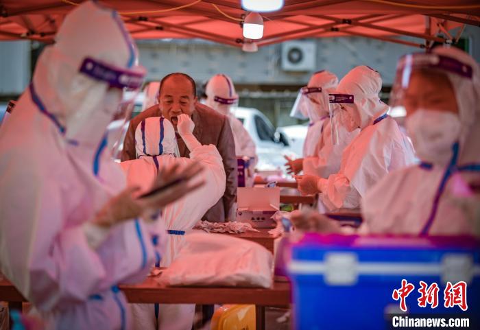 “大白”們堅守在核酸采樣臺上。 阮傳龍 攝