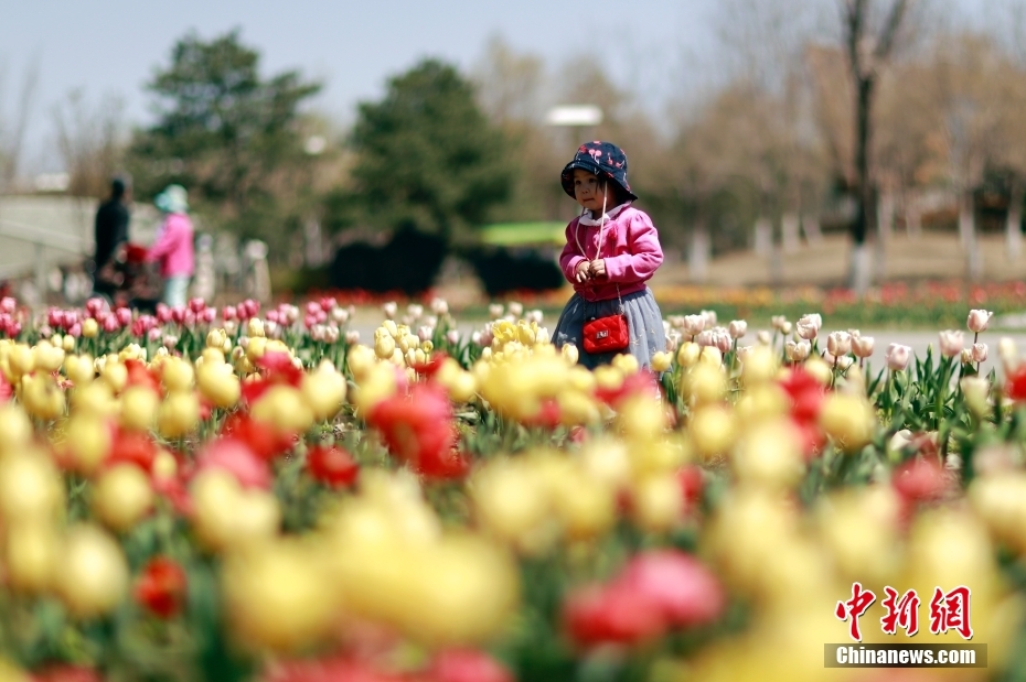 4月16日,一名小朋友在北京世園公園郁金香花叢中賞花拍照。北京世園公園里的30萬(wàn)株郁金香陸續(xù)進(jìn)入盛花期,吸引不少市民賞花“打卡”。 中新社記者 盛佳鵬 攝