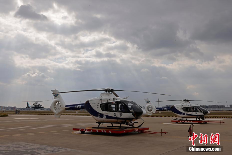 上海市公安局警務(wù)航空隊直升機從虹橋機場起飛前往國家會展中心(上海)。 殷立勤 攝