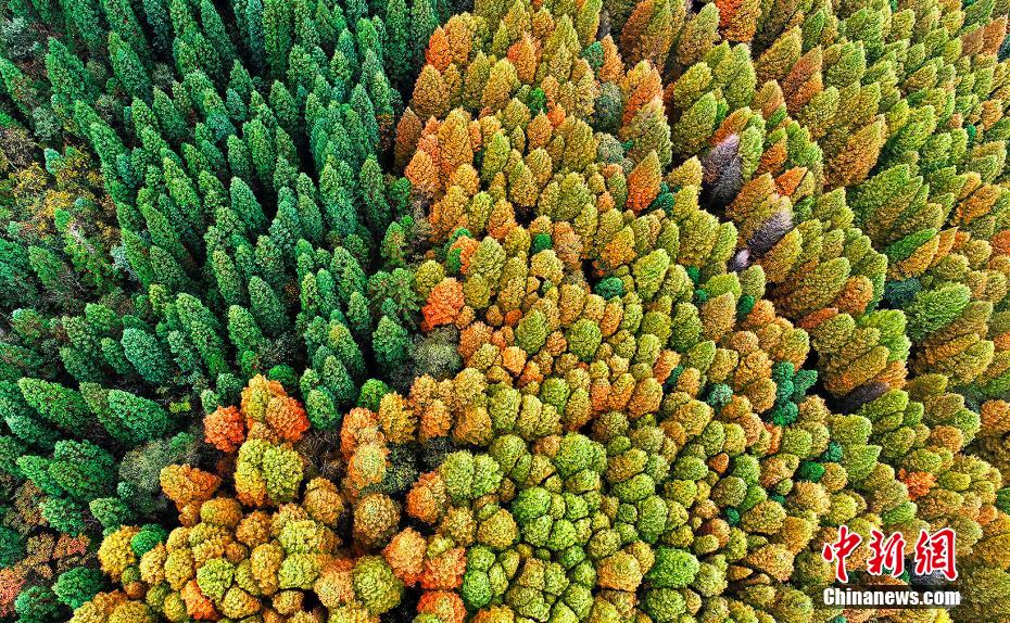 森林公園內(nèi)的水杉林變黃。黃河 攝