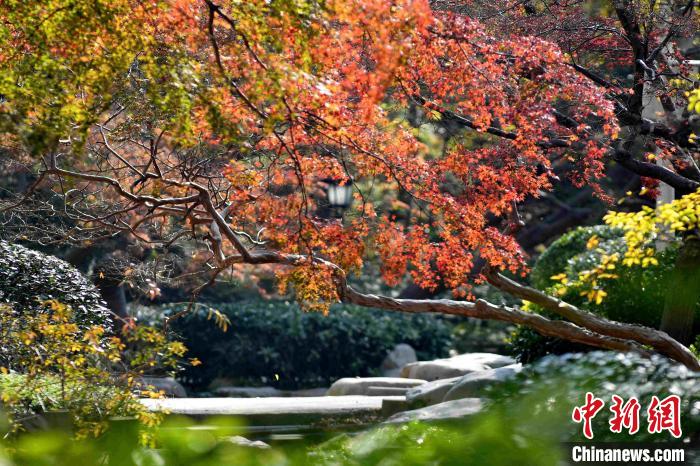 青島中山公園內(nèi)紅葉繽紛、色彩絢麗!⊥鹾I 攝