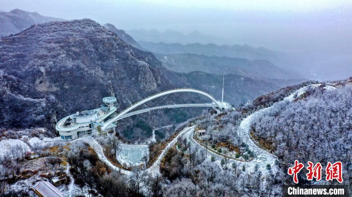 位于淄博市潭溪山旅游度假區(qū)海拔800余米的山頂處出現(xiàn)了霧凇奇觀!〈扌鲁 攝