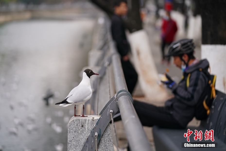 3月5日,大觀河上翱翔的紅嘴鷗。進(jìn)入3月份,云南昆明天氣逐漸變暖,越冬的紅嘴鷗即將飛離當(dāng)?shù)。不少市民周末?lái)到大觀河邊觀鷗喂鷗,送別“春城”的老朋友,期待和它們冬天再相聚。中新社記者 劉冉陽(yáng) 攝