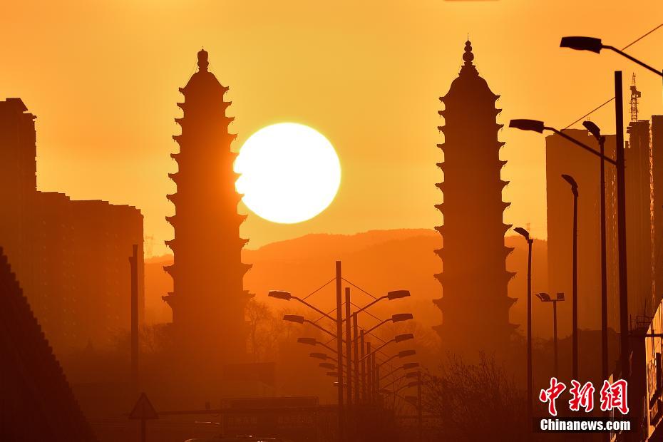 太原清晨現(xiàn)“雙塔懸日”景觀(4)