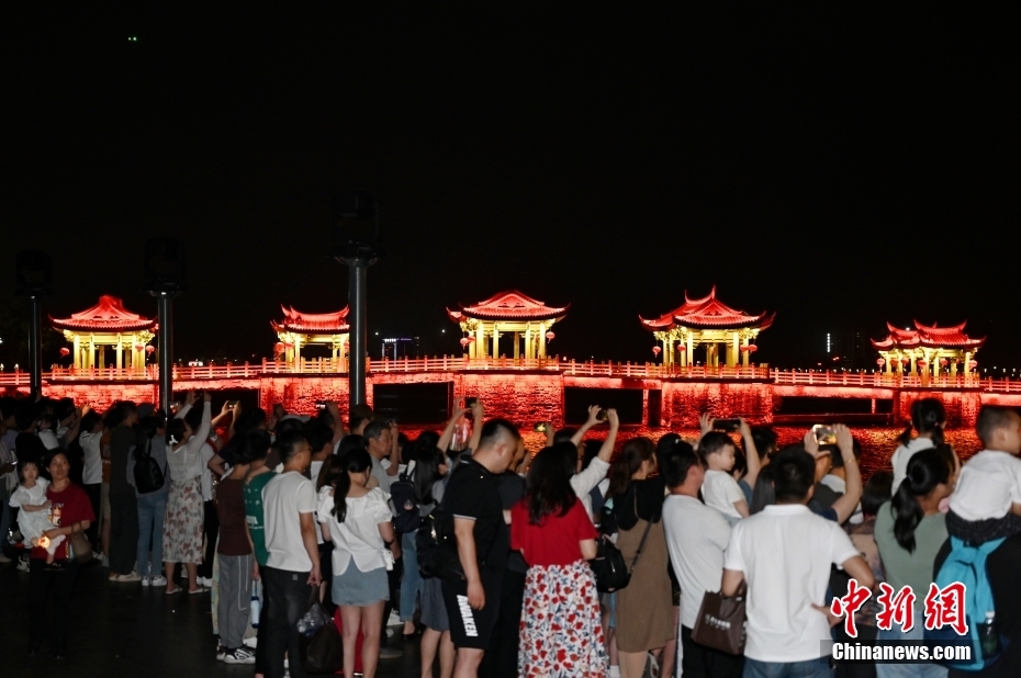 廣東潮州:廣濟(jì)橋燈光秀吸引游客(3)