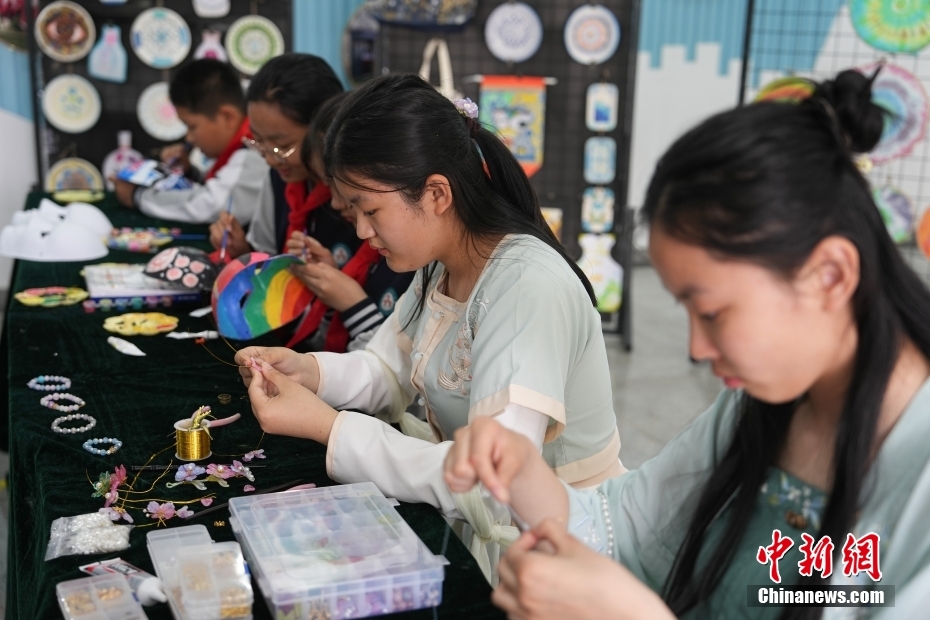 5月10日,學(xué)生們在濟(jì)寧七中進(jìn)行傳統(tǒng)手工藝制作。崔楠 攝