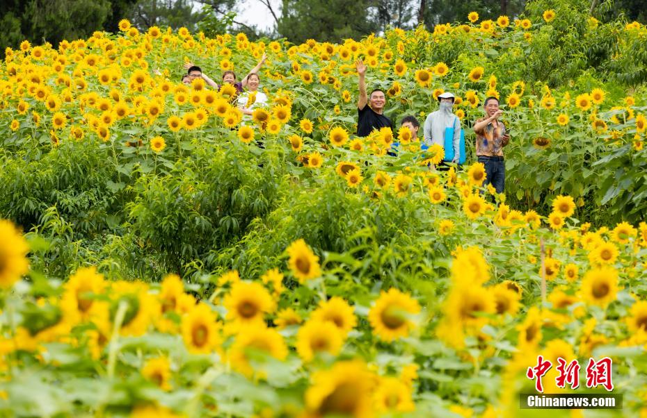 圖為數(shù)萬(wàn)株向日葵燦爛盛放成“花!薄⒓o(jì)湄 攝