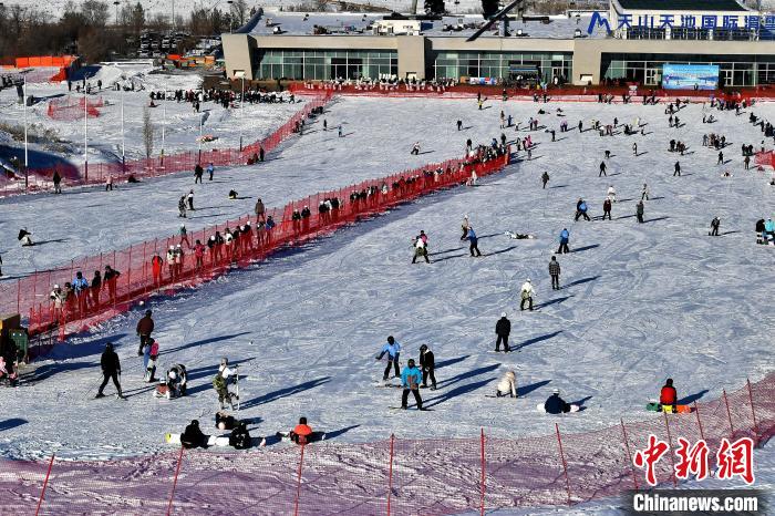 圖為12月22日,游客在位于新疆昌吉回族自治州阜康市天山天池國際滑雪場滑雪!≈行戮W(wǎng)記者 張斌 攝