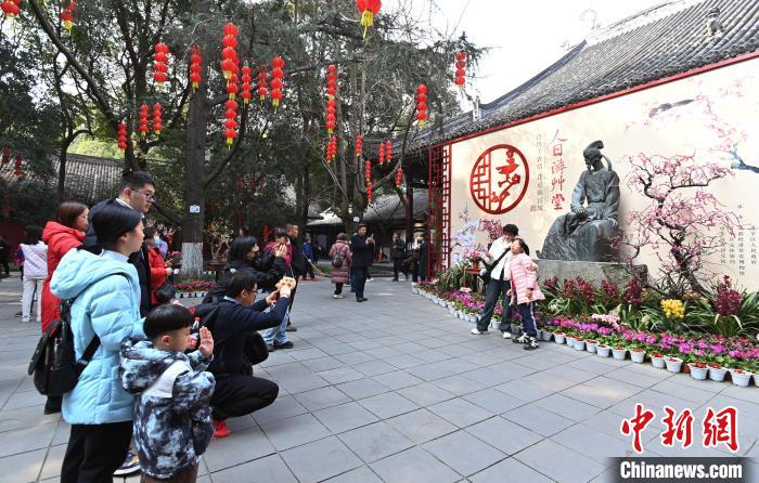 游客在成都杜甫草堂拍照留念。記者安源 攝