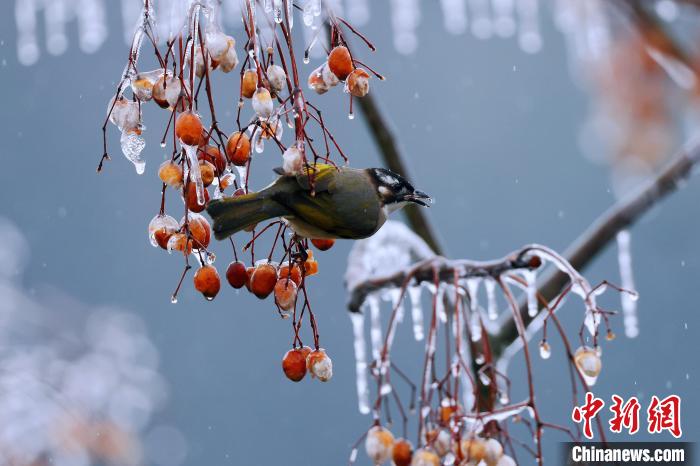 安徽祁門:冰凌盛果楝樹下 飛鳥歡鬧入畫來(4)