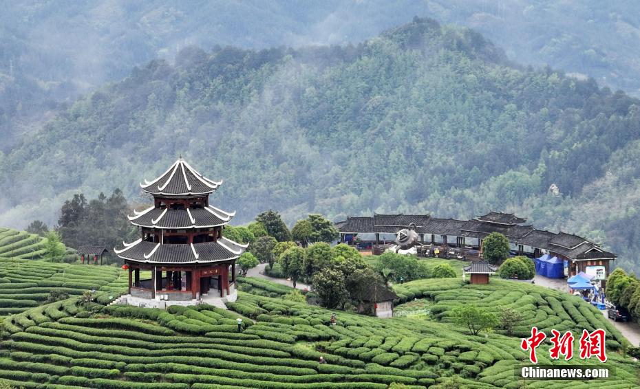 4月6日,廣西三江侗族自治縣八江鎮(zhèn)布央村仙人山茶園云霧繚繞,宛如仙境。龔普康 攝
