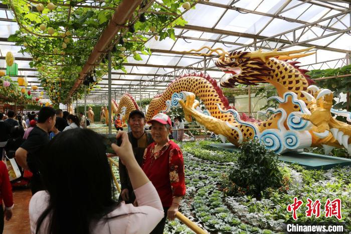 4月20日,第二十五屆中國(guó)(壽光)國(guó)際蔬菜科技博覽會(huì)在山東壽光開幕,不同展館內(nèi),各種龍?jiān)氐木坝^引人注目。記者 沙見龍 攝
