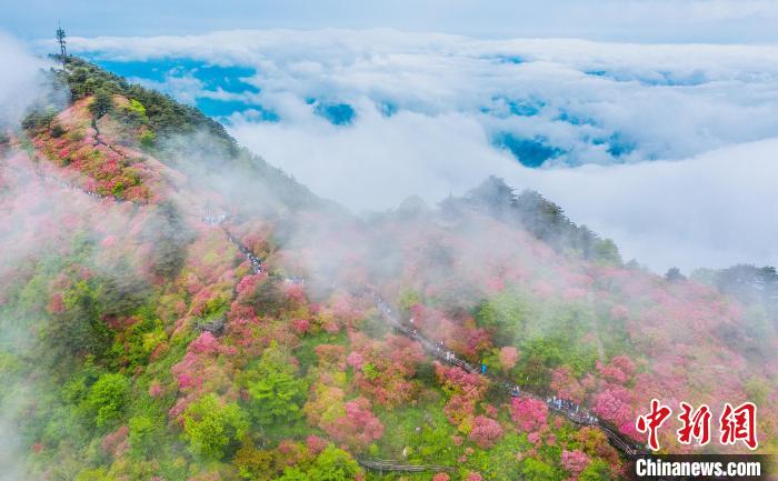 湖北麻城:龜峰山十萬(wàn)畝杜鵑云端競(jìng)艷(4)