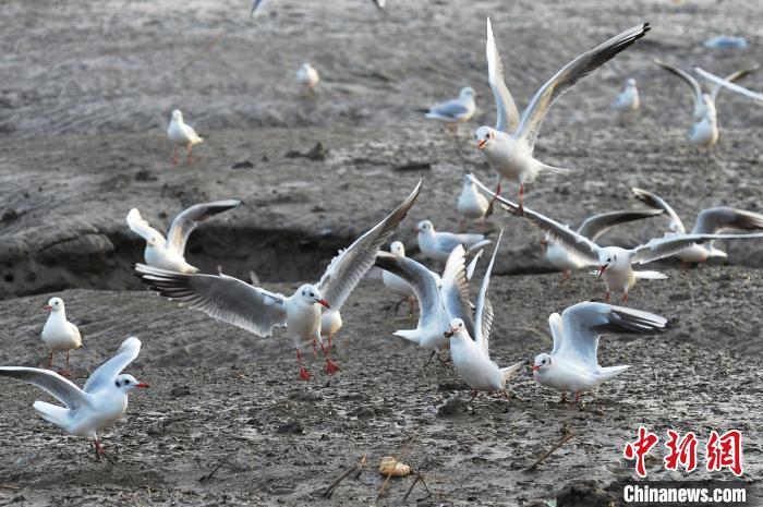 山東青島:越冬候鳥成群集結(jié) 冬日濕地?zé)òl(fā)生機(jī)(3)