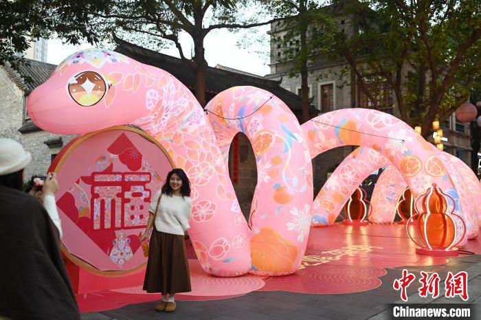 廣東佛山街頭“萌蛇”裝置吸引游客(3)