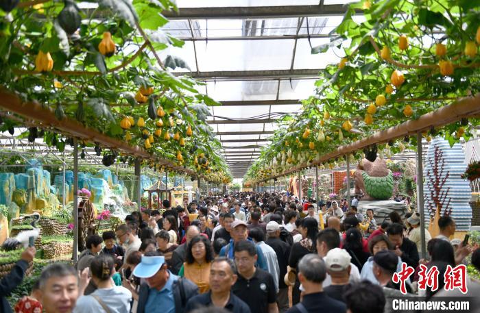 4月20日,山東壽光,第二十六屆中國(壽光)國際蔬菜科技博覽會(huì)(下稱“菜博會(huì)”)開幕。圖為民眾參觀菜博會(huì)。本屆菜博會(huì)主展區(qū)總面積達(dá)45萬平方米,設(shè)11個(gè)展館,展示2600余個(gè)實(shí)地種植的國內(nèi)外蔬菜品種、80多種先進(jìn)種植模式、100多項(xiàng)新技術(shù)。中新社記者 沙見龍 攝