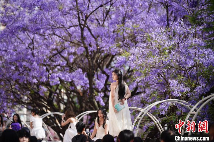 昆明藍(lán)花楹盛放 民眾共赴浪漫花約(6)